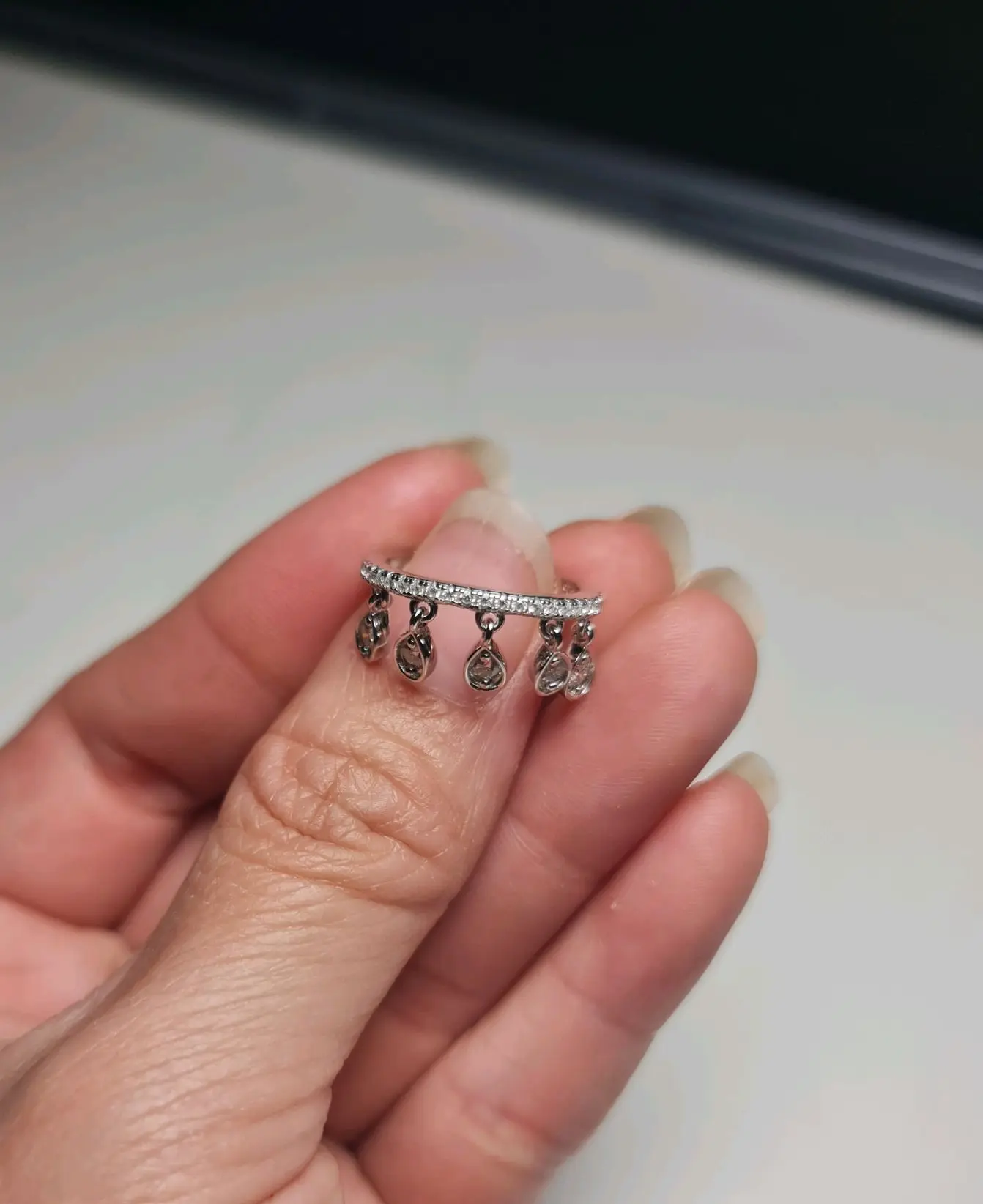 Fine 925 Sterling Silver White Gold Plated Water Drop Tassel Dangle Rings Round Cut VVS D Color Moissanite Jewelry for Women