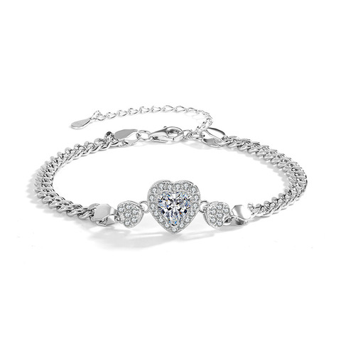 Simple Fashion S925 Sterling Silver Inlay Colorful Diamond Heart Ocean Bracelet Light Luxury Ladies Fine Chain Link Bracelets