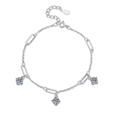 Joias Árabes Adodo Atacado de Fábrica Pulseiras de Corrente e Elos Finos em Prata Pura S925 Real com Moissanite de 1.5 Quilates Cor D para Mulheres