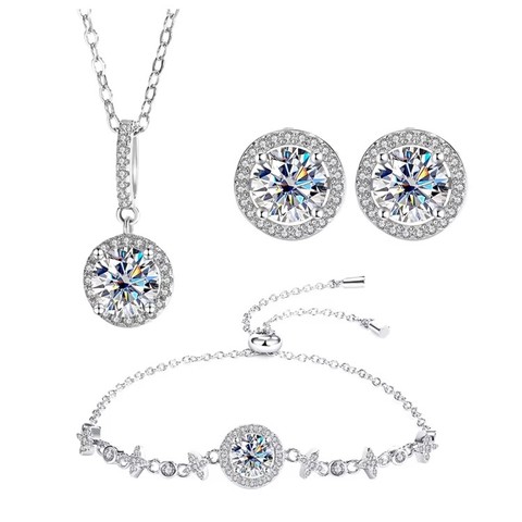 Conjuntos de Joias Finas da Moda para Mulheres com Pingente Redondo, Colar, Pulseira e Brincos de Prata Pura S925 com Zircônia e Moissanita Genuína de 1ct