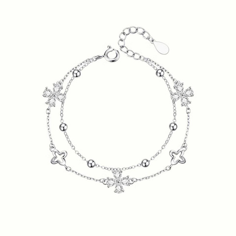 สร้อยข้อมือเพชรสวิสแฟชั่นลายใบโคลเวอร์สี่แฉกนำโชคกำไล925ชั้นดีเงินสเตอร์ลิงสองชั้นสร้อยข้อมือกองสำหรับผู้หญิง