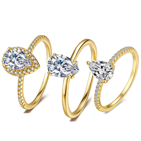 Hipoalerjenik 18k altın kaplama 925 ayar gümüş basit armut kesim bayanlar günlük eşya veya düğün için 1 karat Moissanite yüzük